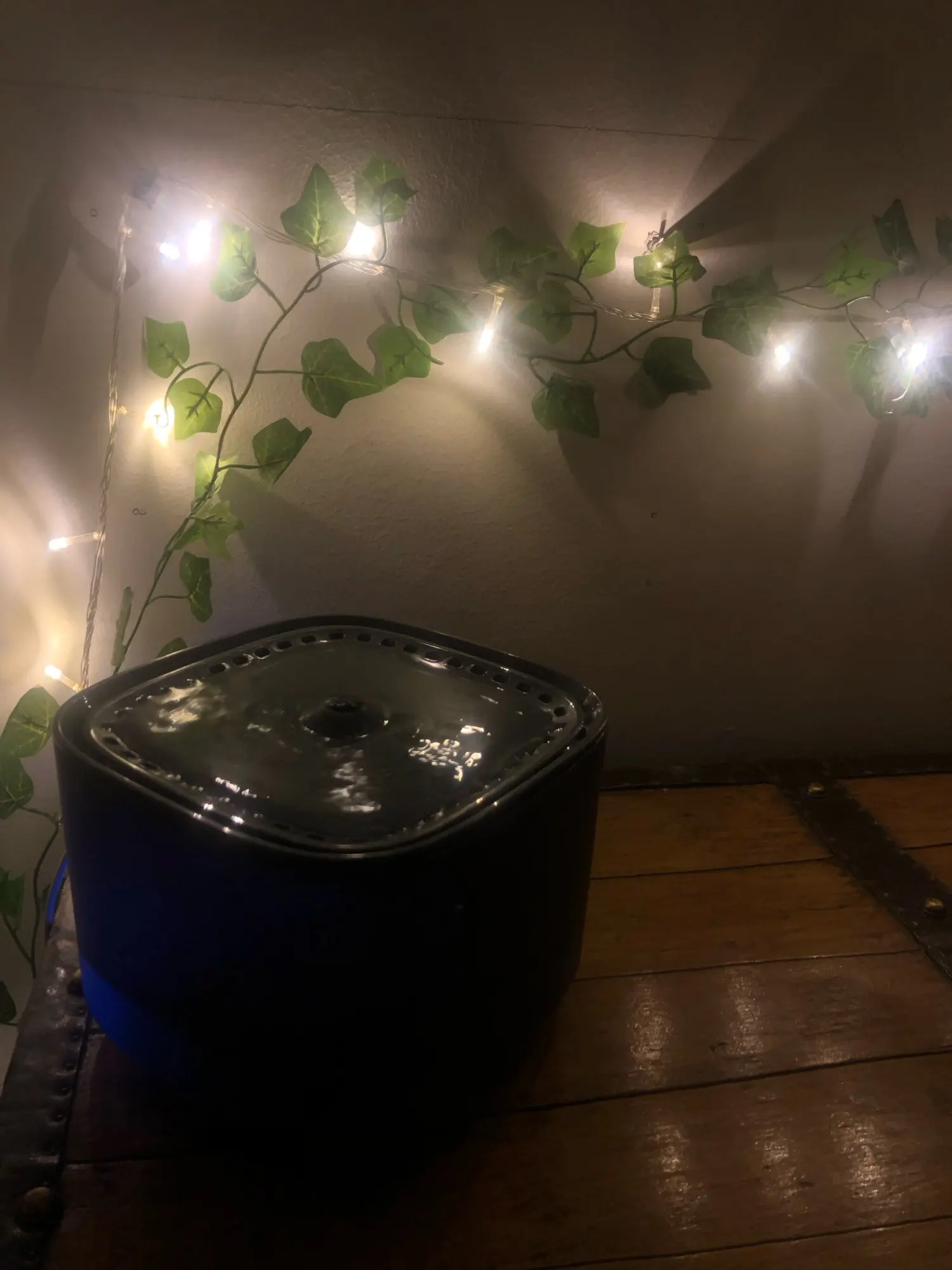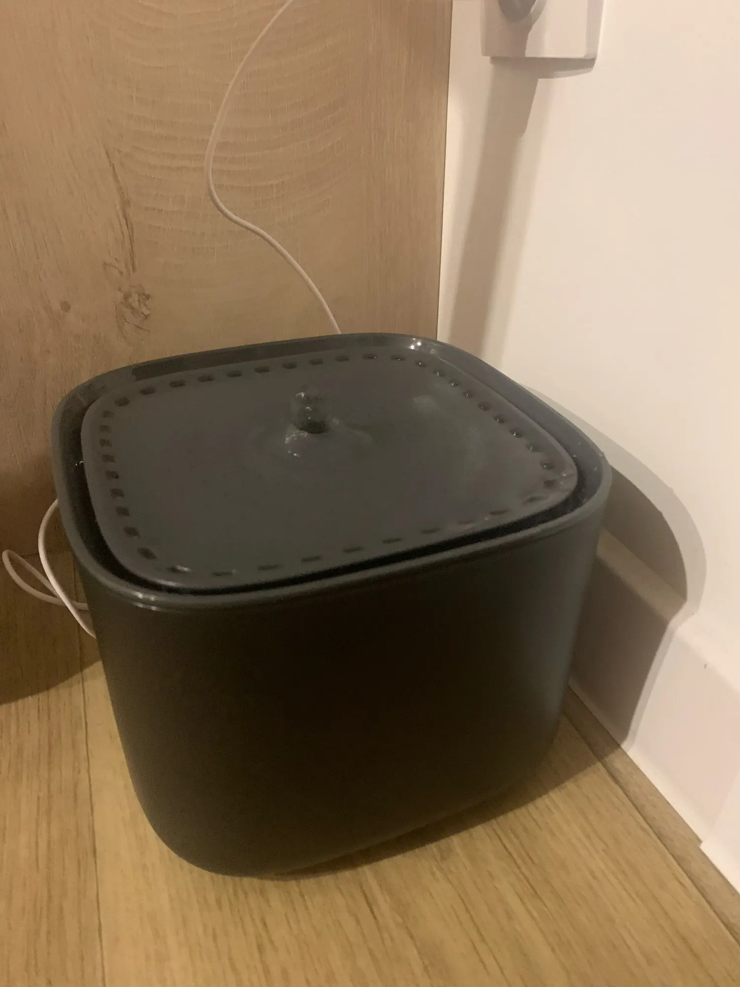 Lo trovo molto utile e bello. È facile da montare, capacità di 3 litri, nessun rumore, è collegato alla luce. Viene fornito con il suo filtro e il mio gatto è molto contento del suo nuovo font!! Qualcosa di costoso per essere AliExpress ma non mi lamento, siamo felici!! Consigliato!!